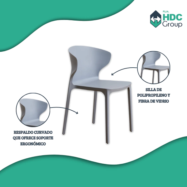 Asiento: POLIPROPILENO Y FIBRA DE VIDRIO