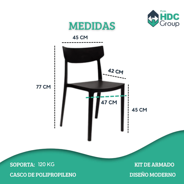 Materiales de la silla: POLIPROPILENO Y FIBRA DE VIDRIO